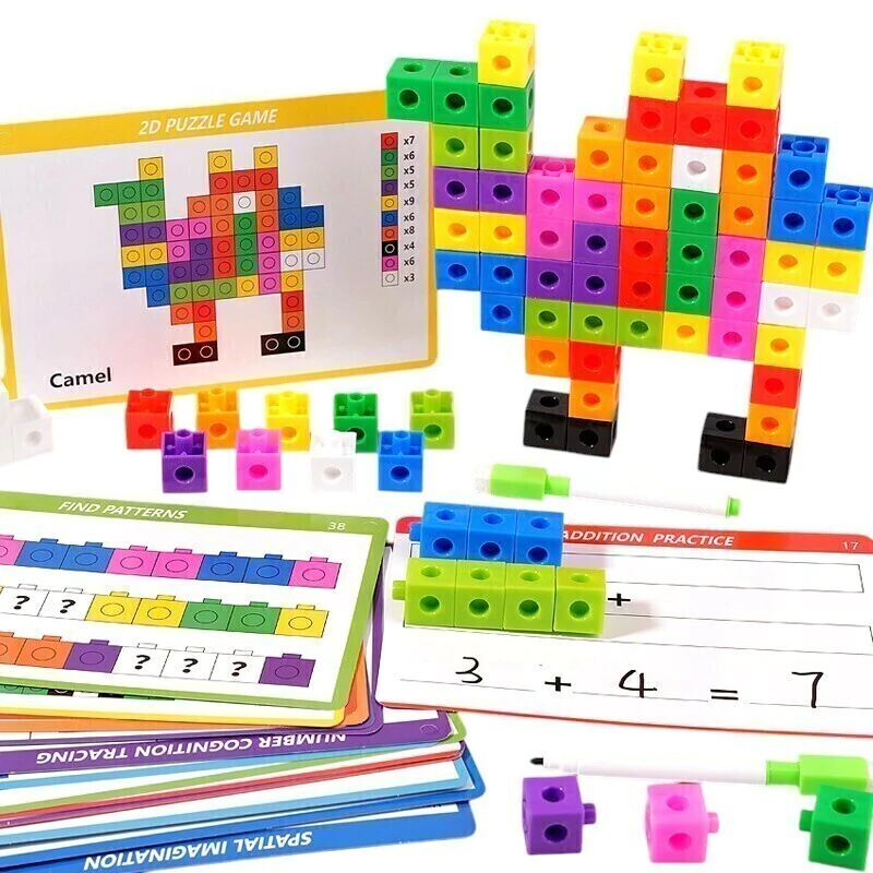 Un juego didáctico súper completo que combina creatividad, matemáticas y lógica. Con estos coloridos bloques y tarjetas de actividades, los niños y niñas podrán: