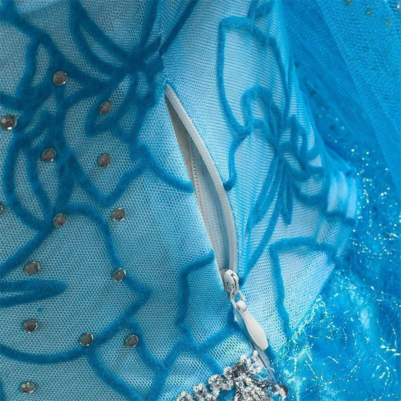 Disfraz celeste con brillos y capa, inspirado en la Reina de Hielo. Perfecto para cantar “Libre Soy”
